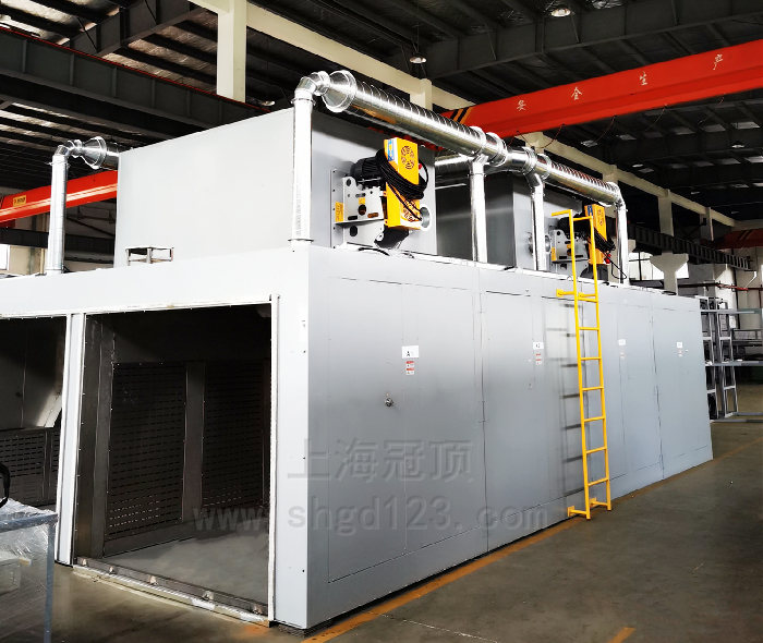 循環(huán)風(fēng)方式:熱風(fēng)左右強(qiáng)制循環(huán)運(yùn)風(fēng),配4臺(tái)7.5KW保溫風(fēng)機(jī)循環(huán)加熱。