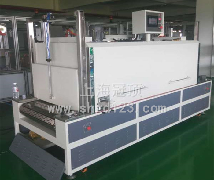 2、三個(gè)溫區(qū)分兩節(jié)爐蓋。產(chǎn)品進(jìn)料高度為220mm、進(jìn)料寬度為870mm,出口段內(nèi)部高度為790mm(配3個(gè)自動(dòng)升降門(mén));烘干部分總長(zhǎng)3350mm,